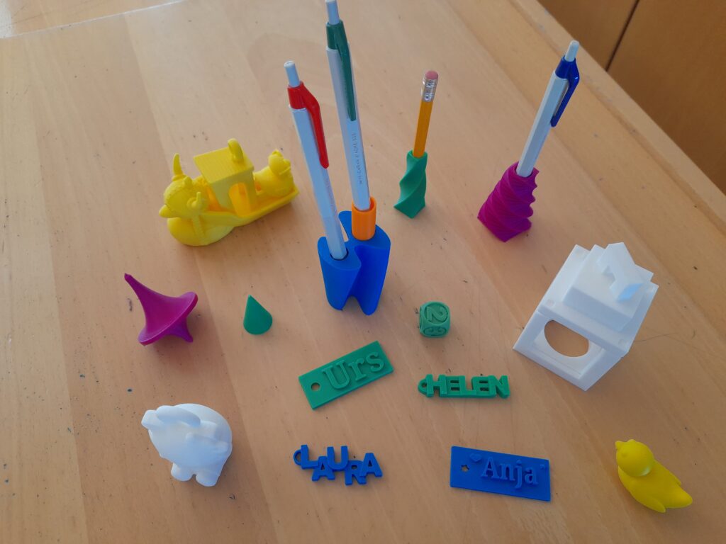 Den Schülerinnen und Schülern standen insgesamt zehn 3D-Drucker zur Verfügung, mit denen sie eigene kleine Objekte herstellen konnten. Mithilfe der benutzerfreundlichen 3D-Konstruktionssoftware «Tinkercad» entwarfen sie eigenständig Modelle, die anschliessend ausgedruckt wurden. In einem ersten Schritt entstanden individuell gestaltete Schlüsselanhänger. Darüber hinaus suchten die Jugendlichen auch Vorlagen aus dem Internet, passten diese an und brachten eigene Ideen ein.