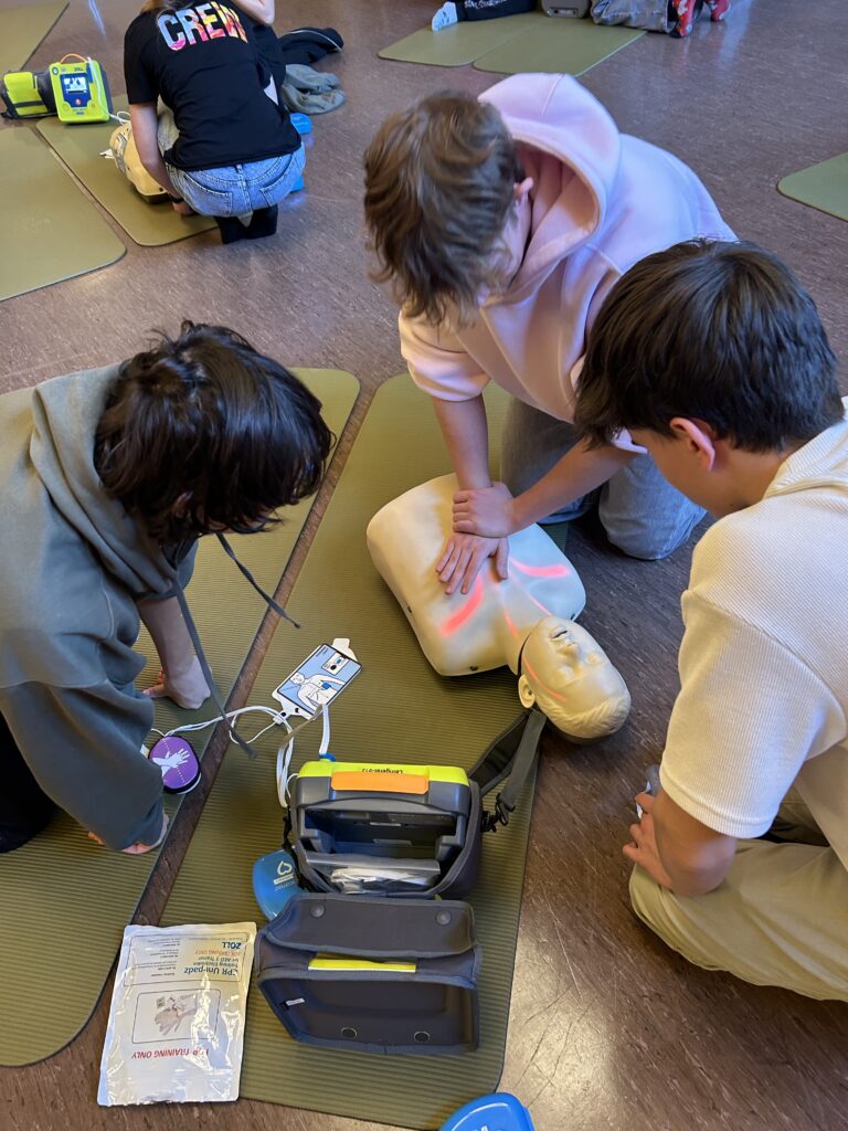 Das Thema Erste Hilfe wurde bereits im Dezember in einem Projekttag mit den Oberstufenschüler:innen thematisiert. Die Jugendlichen durften an diesem Tag viel praktische Erfahrung sammeln. Reanimation, Wärmeerhalt, Druckverbände, Rettungsschlitten aus Ski oder Snowboard und vieles mehr standen auf dem Programm.